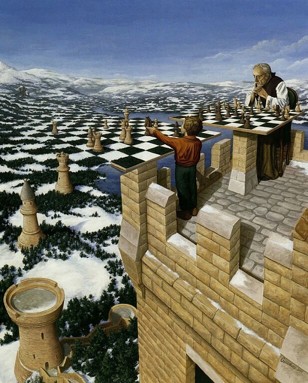 Вообще Роб Гонсалвес любит и умеет работать с природным материалом: море и волны так близки по форме и структуре с горными грядами с их снежными вершинами, что найти грань перехода одного в другое на картинах мастера порой совершенно невозможно. В детстве мы часто глядим на облака и видим в них каких то животных. Художник использует свою фантазию в совершенстве!